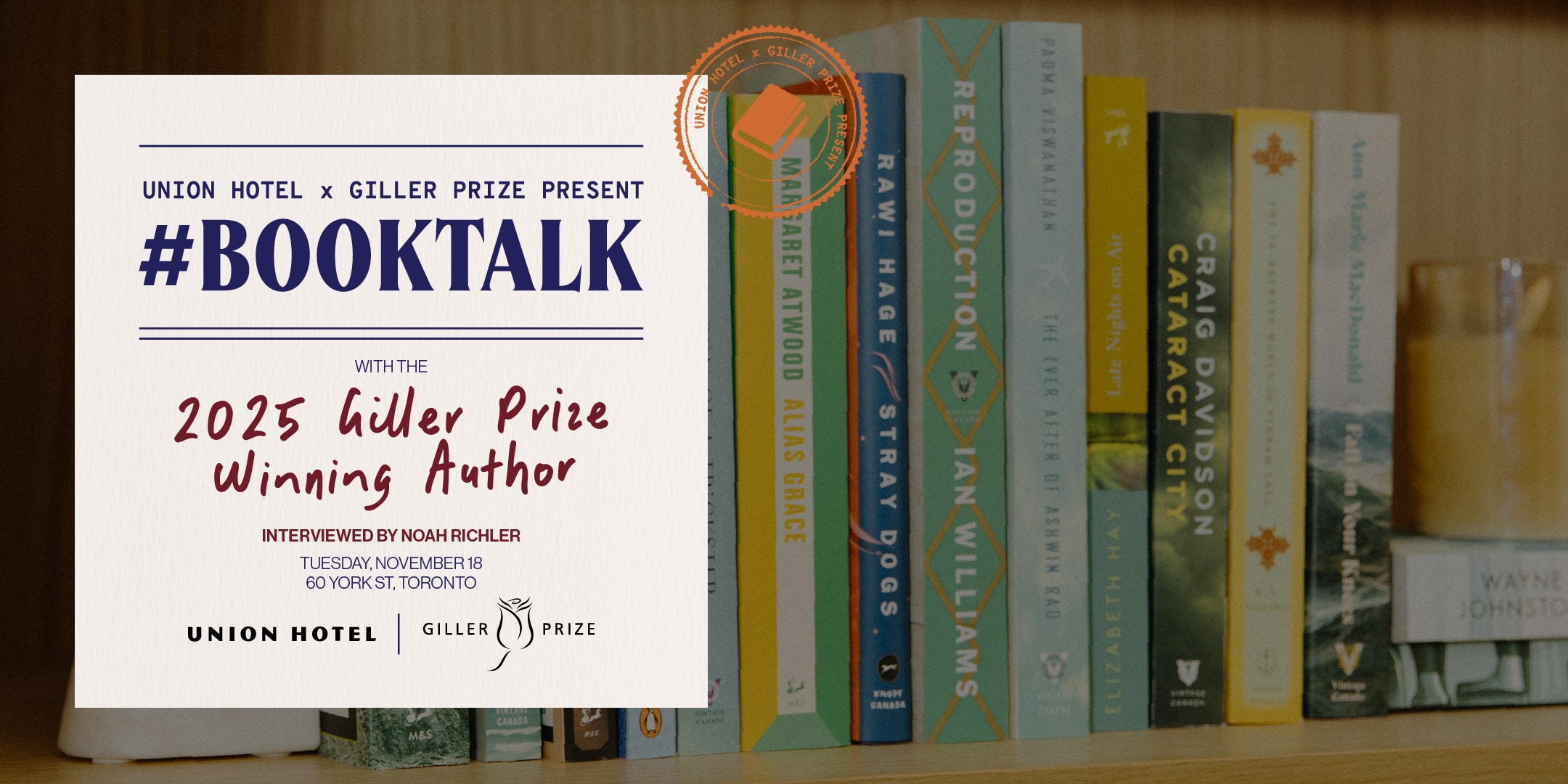Join Union Hotel and the Giller Prize for a very special edition of #BookTalk, an intimate new literary series celebrating Canadian literature in a fresh, community-focused way.