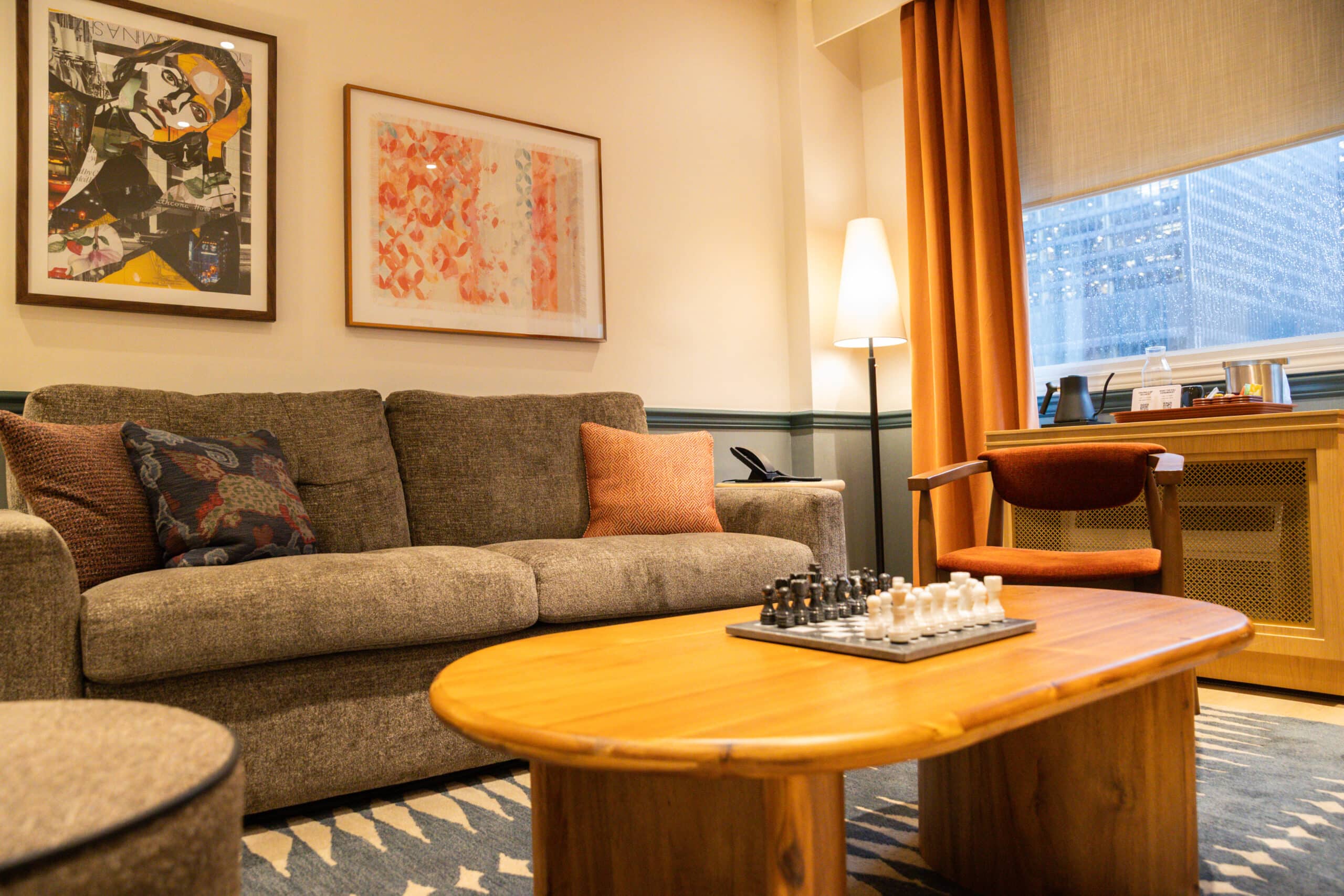 Luxurious grande suite. One king bed and living area for the pair who have good taste in vinyl.